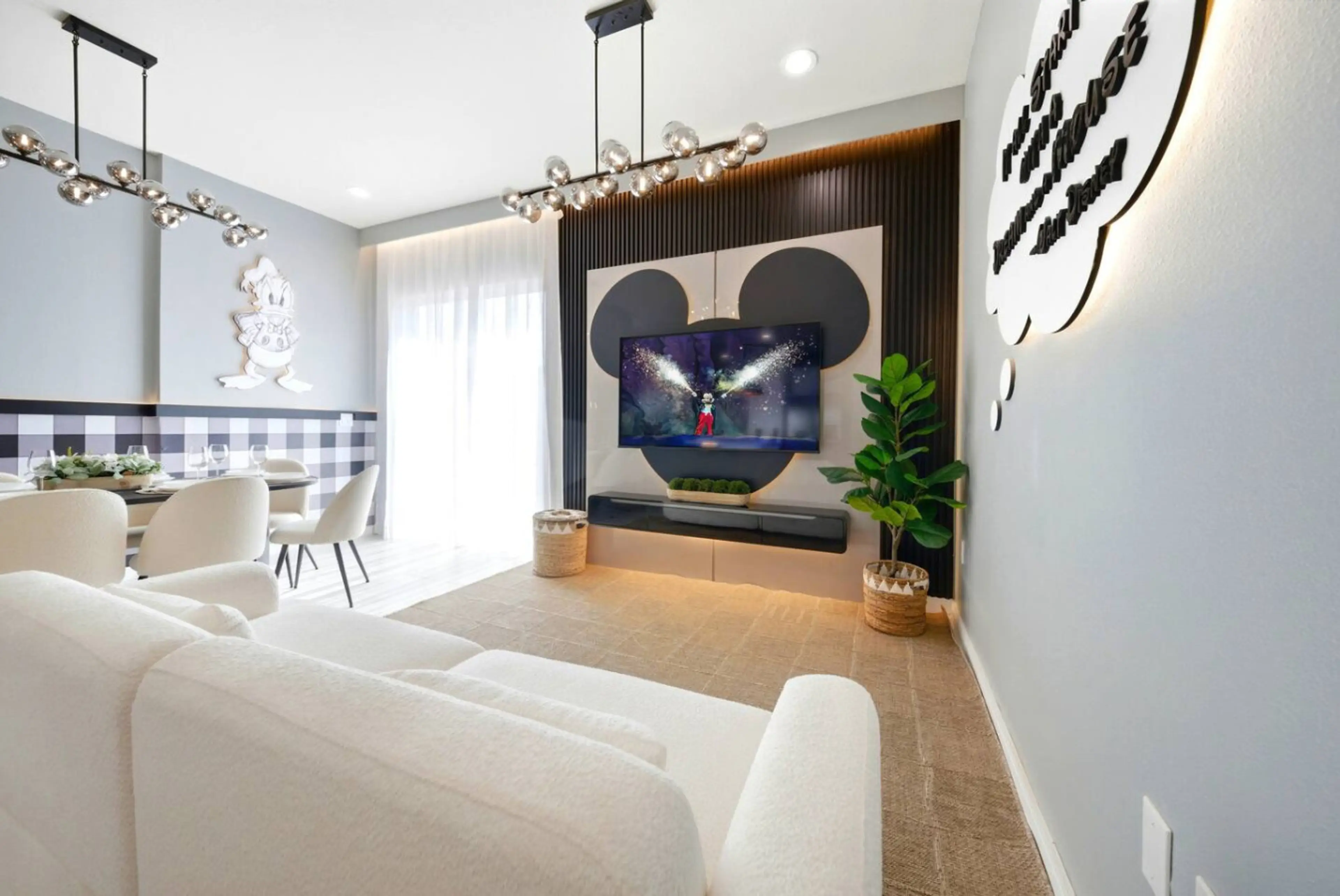 Welcome to our magical 3-bedroom getaway, newly decorated and thoughtfully designed to create an immersive Disney experience for the whole family! Step into beautifully themed bedrooms featuring Toy Story, Star Wars, & Beauty and the Beast, making every stay unforgettable. Also enjoy a Mario arcade...